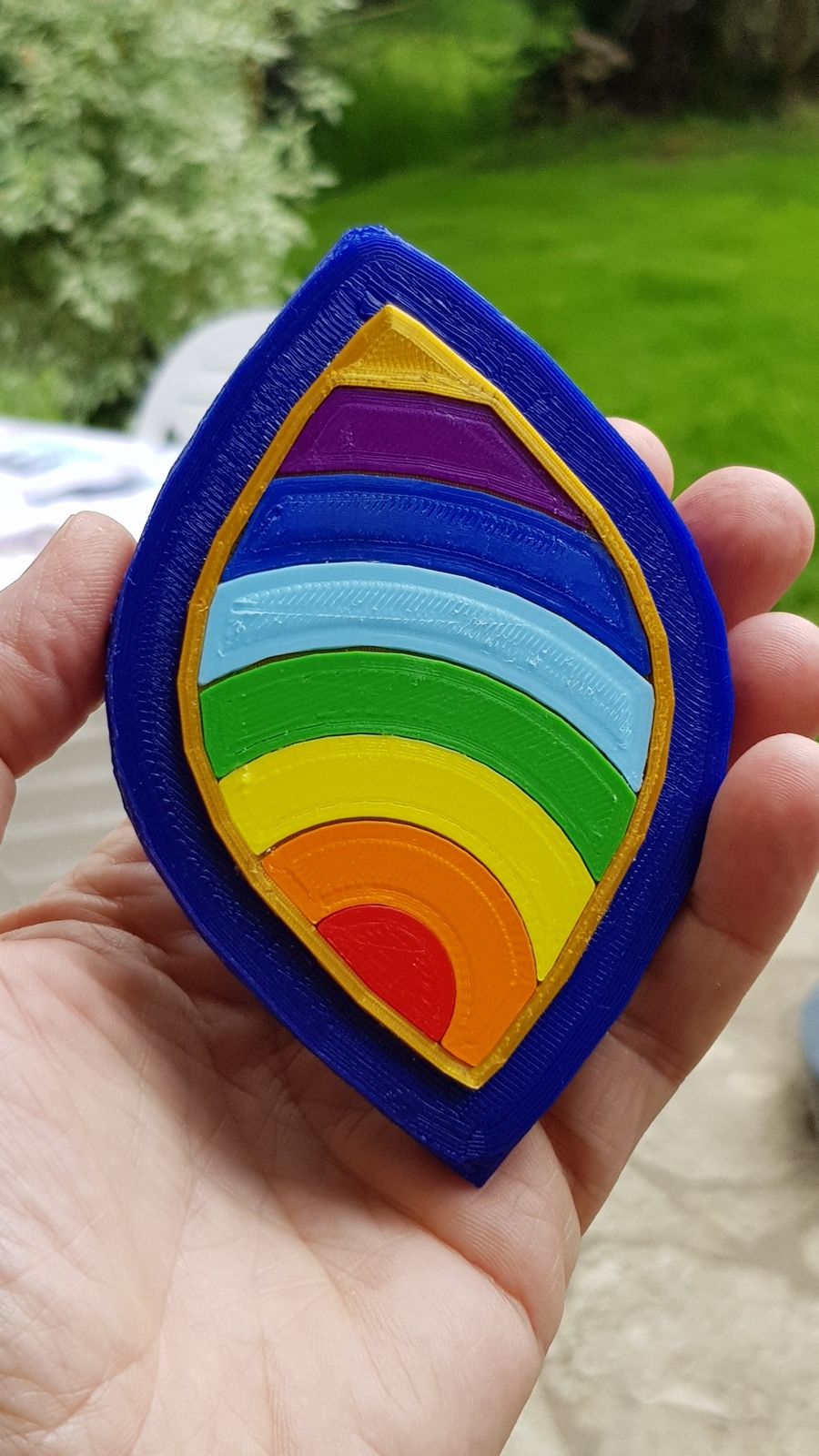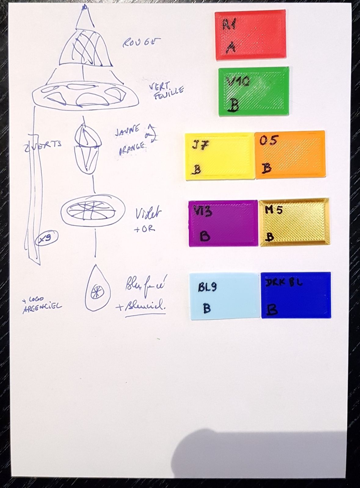 Les 7 couleurs des chakras ou de l'arc-en-ciel, réparties autour de ce centre. Le chiffre 9 pour l'expansion sur des notes chromées.